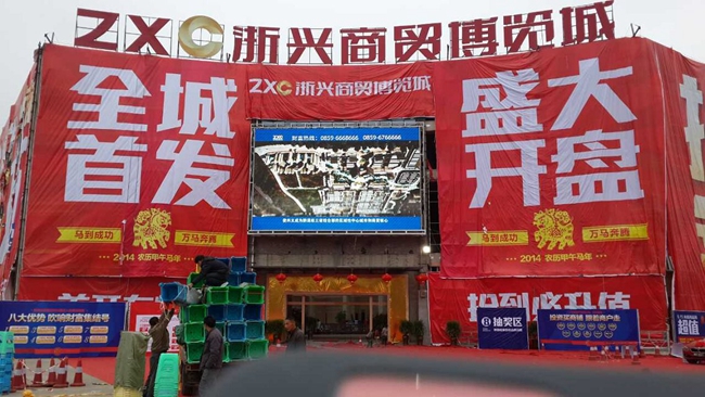 回顧2014年鑫彩晨經(jīng)典案例工程-浙興商貿(mào)博覽城P10戶外全彩led顯示屏
